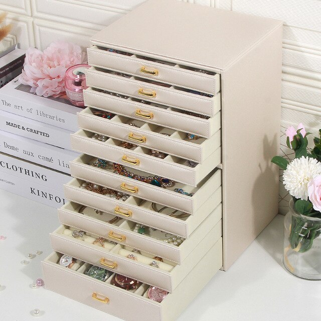 Ontdek de ultieme Sieradendoos XXL die speciaal is ontworpen om al uw kostbare sieraden veilig en stijlvol te bewaren. Deze ruime sieradendoos biedt niet alleen volop ruimte voor uw uitgebreide collectie, maar voegt ook een vleugje elegantie toe aan uw interieur. Met zijn zorgvuldig ontworpen compartimenten en zachte fluwelen voering, zorgt deze doos ervoor dat elk stuk sierlijk en beschermd blijft. Stel je voor hoe gemakkelijk het wordt om de perfecte ketting of armband te vinden voor elke gelegenheid met alles op een overzichtelijke en georganiseerde manier gepresenteerd.